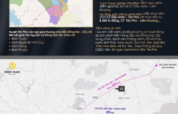 - Nằm ngay Tuyến Cao tốc Dầu Giây - Tân Phú - Liên Khương 500m(Khu vực Tân Phú đã được đền bù cho dân).
